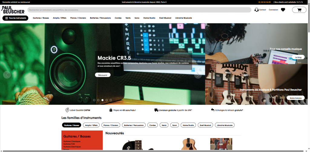 Ce projet consistait à intervenir sur le site e-commerce de l’entreprise Paul Beuscher, spécialisé dans la vente d’instruments de musique. L’objectif était de développer de nouvelles fonctionnalités front-end et d’optimiser l’expérience utilisateur en respectant un cahier des charges précis fourni par le client.